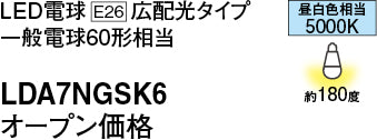 60形相当 LED電球 一般電球タイプ / LDA7NGSK6